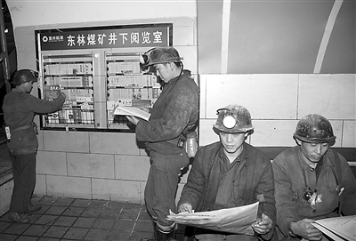 重庆南桐矿业公司东林煤矿在井下-100m水平候罐室设立的井下阅览室,12月9日与矿工见面,成了矿工提升素质的又一个“充电站”。