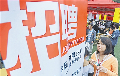 12月12日,佛山,广东纺织职业技术学院2010届毕业生供需见面会,一个毕业生在查看一个招聘单位的招聘职位。当日,在该校毕业生供需见面会上,纺织企业提供了4200多个岗位揽才。崔景印 摄