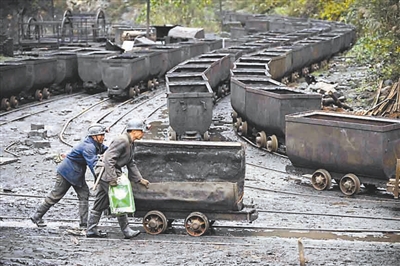 12月12日,成都,长源煤矿矿工推着矿车,进入矿井最后一次收拾设备。 当日,长河坝沟内最后一个煤矿——长源矿业有限责任公司全面完成关闭工作。