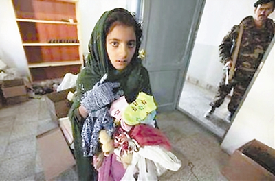 12月15日,在阿富汗首都喀布尔以南150公里的霍斯特省,一位女孩从阿富汗国民军开办的免费诊所里领到一些衣物。每周四,该诊所都要为邻近村庄的儿童进行体检并发给他们一些衣物和文具。阿健 供图
