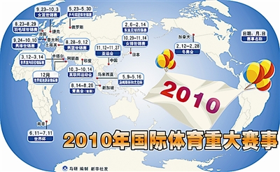 2010年是个体育赛事极其丰盛的年份。在这一年,让人翘首以盼的足球世界杯将在南非开战,而温哥华冬奥会在年初就会奉献火热的冰雪大戏。与此同时,各国运动健儿也会在新的奥运周期里继续努力,为两年后的伦敦奥运会蓄势。