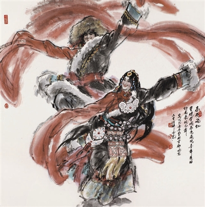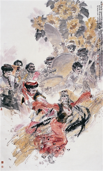 陈玉先在当代中国画家中,享有“多面手、快手”的美誉。他有着深厚的艺术功底和造型能力,不仅在重大题材创作中传神灵秀、舒展大气;水墨舞蹈人物画更是挥洒自如、神韵天成。尤其是近年来他创作的水墨民族舞蹈系列,如舞动的水墨,旋跃的色彩,彰显出特有的绘画魅力。