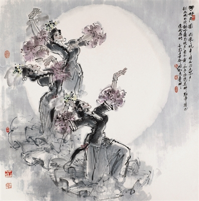 他的水墨舞蹈人物,不仅舞姿形体优美,而且人物飘逸传神,无不灵动着生命之美和韵律之美。他创作的巨幅水墨舞蹈人物画《太阳花开》,曾荣获全国书画院作品展最高学术大奖“徐悲鸿美术奖”。陈玉先同时被授予全国书画院“百佳书画家”称号。