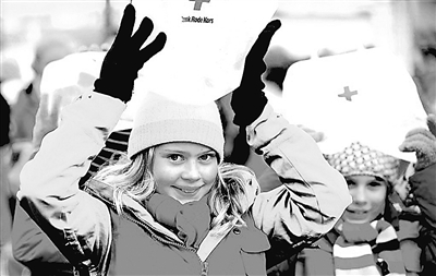 12月15日,在哥本哈根,学生们参加“为水步行”活动,表达对水资源匮乏地区的支持。