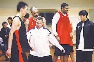 12月17日,上海东方男篮训练备战新赛季首场比赛。主教练邓华德正指导队员训练。张栋 摄