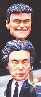 上海城隍庙,栩栩如生的人物面夺人眼球。前为中国电视台主持人李咏,后是篮球巨星姚明。沈井韦 摄