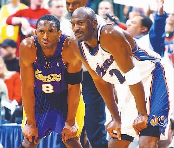 科比“并肩”乔丹(右),但仍难和乔丹比肩。