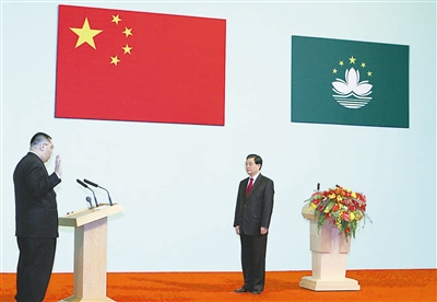 胡锦涛出席并发表重要讲话 澳门特别行政区第三任行政长官崔世安及特别行政区第三届政府主要官员等宣誓就职