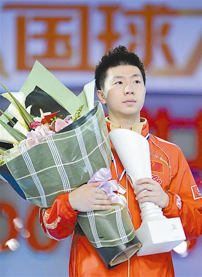 12月20日,中国选手马龙在颁奖仪式上。当日,在长沙举行的2009世界乒乓球总冠军赛男子单打决赛中,马龙以4比1战胜德国选手波尔,夺得冠军。