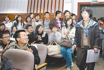 12月18日,《财经》杂志前主编胡舒立正式就任中山大学传播与设计学院院长。图为胡舒立在中山大学的第一堂演讲。夏宇/CFP