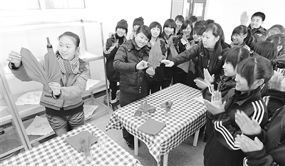 辽宁省锦州市太和区职业培训中心与工会近日举办了一场别开生面的返乡农民工技能大赛,1000名经过培训的学员参加了机修、服装、焊接等十项技能的比赛。图为旅服专业学员正在进行技艺大比拼。李铁成 摄