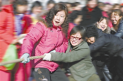 山西大同煤矿集团公司燕子山矿工会常年坚持开展多种多样的群体活动,丰富和活跃了职工的业余文化生活,增强了企业的凝聚力和向心力。图为该矿女工在矿工会举办的拔河赛上奋力拼搏。 潘少峰 摄