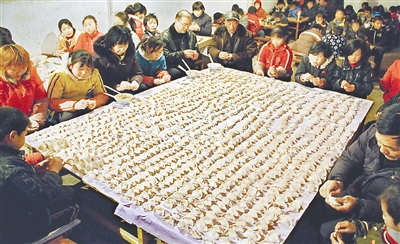 12月21日,政府工作人员与师生一起包饺子。当日,山东巨野县劳动和社会保障局与当地政府工作人员来到章缝镇巨南民立学校,与200多名留守农民工子女一起包饺子、迎冬至,让这些父母不在身边的孩子感受社会大家庭的温暖。