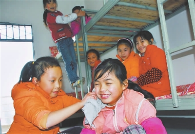 12月10日,四川蓬安县巨龙镇小学留守儿童在学校“留守儿童寄宿公寓”愉快地生活。郭安平 摄