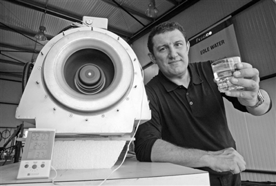 10月9日,在法国东南部圣蒂勒一家水处理公司,负责人马克在展示该公司研发的风能制水机。