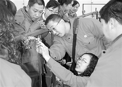 12月22日,大庆油田第四采油厂第二油矿的技师在为员工讲解管汇工艺构造。年终岁尾,由大庆油田新时期五面红旗之一的何登龙领衔的技师协会组织开展技能竞赛,吸引了采油工、集输工、电工等工种的近200位职工参与。张旭凯 摄
