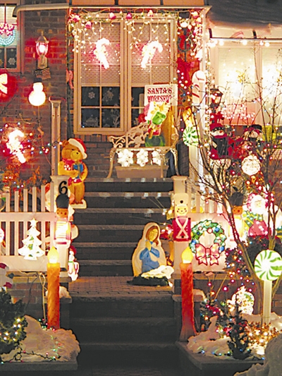 这是22日在美国纽约皇后区60路交69街处拍摄的市民房屋外的圣诞节装饰。纽约的很多市民都有在自家的房屋外装饰上彩灯迎接圣诞节的习惯。新华社记者 刘欣 摄