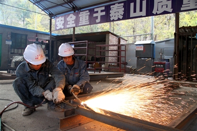 图为集团在兰渝铁路施工中注重安全形式教育宣传,项目职工在“安全重于泰山”的标语下施工。