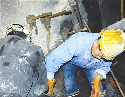 12月26日,中铁隧道集团一处工人正在建堵水墙。记者从福建省龙岩市政府获悉,12月23日,在建的龙厦铁路象山隧道1号斜井发生涌水险情,目前,龙岩市已启动应急预案。
