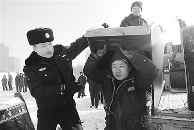 12月23日,工作人员搬运准备公开销毁的赌博游戏机。