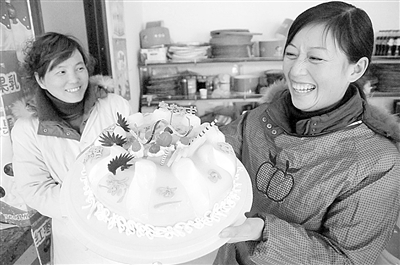 12月27日,在河南省社旗县白鸽面包房,一位下岗职工创办的蛋糕店开业。该县粮食部门职工贾之改下岗后,走上了自主创业之路,先后开办了6家连锁店,吸纳了20多名姐妹在这里就业,同时,她还主动帮助有条件的姐妹自己开店致富。
