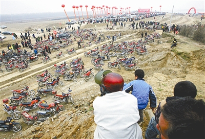 12月26日下午4时,南水北调中线兴隆水利枢纽工程顺利实现大江截流,附近的村民纷纷骑摩托车前来观看。