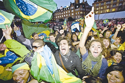 图为2009年10月2日,在丹麦首都哥本哈根,巴西人庆祝里约申奥成功。