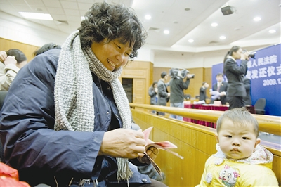 当日,北京世纪富原公司和富原先锋公司的98名务工人员在有关部门帮助下拿到了被拖欠5年之久的工资,北京市第一中级人民法院执行法官将总计440万多元的工资逐一发到他们手中。