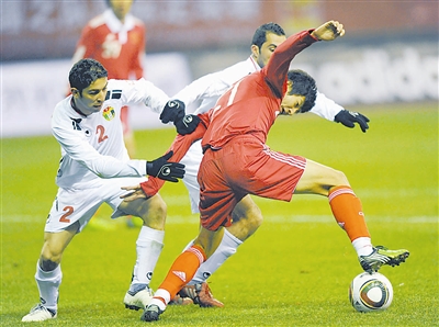 足球热身赛:中国队战平约旦队
