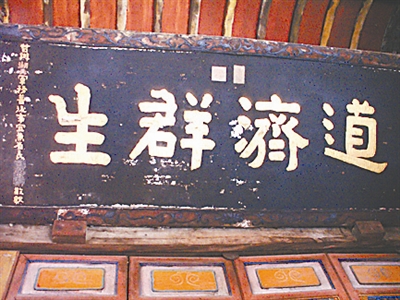 拾阶而上,来到了一座高大的山门旁,门楣上的砖雕匾额刻着“太子坡”三个大字。这是明永乐十七年,附马都尉沐昕亲笔题写,门内依山就势,夹墙复道,曲折蜿蜒,故称“九曲黄河墙”;院内建筑精美,红墙绿顶,古色古香,依山傍势,错落有致,匠心独具。