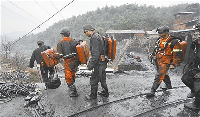 1月6日,搜救队员在湖南省湘潭县立胜煤矿火灾事故现场开展搜救工作。
