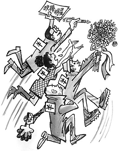 他们“拼死拼活”簇拥在明星周围,哭红双眼、疯狂尖叫……明星是真明星,粉丝可不见得全是真粉丝——据《北京晨报》报道,几年前选秀节目“超级女声”催生的“秀场粉丝”,现在十有八九已职业化,他们“一哭、二闹、三上吊”,都是有金钱当诱饵的。