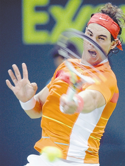 1月6日,在多哈举行的2010年ATP世界巡回赛卡塔尔网球公开赛第二轮的比赛中,纳达尔以2比0战胜意大利选手斯塔拉切,晋级八强。新华社发(陈少金摄)