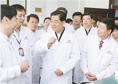 2009年12月21日,中共中央总书记、国家主席、中央军委主席胡锦涛在广东省珠海市考察工作。这是胡锦涛在珠海格力电器股份有限公司技术研究院,就加强产学研结合、增强企业自主创新能力等话题同科研人员深入交谈。 新华社发(资料照片)
