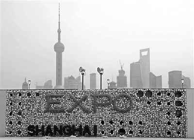 1月9日拍摄的上海外滩陈毅广场上的迎世博垂直绿化墙。