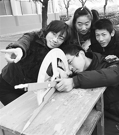 1月12日,山东邹平县实验中学举行素质教育科技创新活动展示活动,学生们进行了机器人操作、航模表演、电脑课件制作以及生物、化学自我创新实验,学生们都表现出极大热情,展示出学生们动手的实践技能和创新能力。图为学生们在进行室外测高。 董乃德 摄
