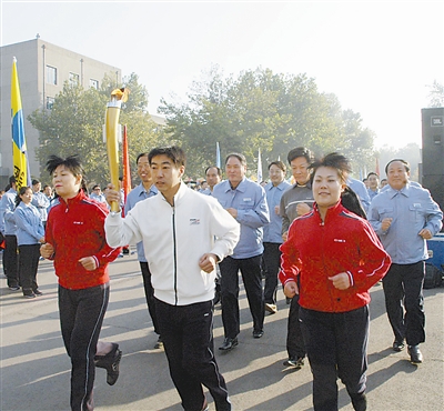 河北兴泰发电公司积极推进职工体育活动,把职工运动会的比赛项目贯穿全年,努力做到竞技项目与普及项目相结合,骨干带动与全员参与相结合,把健身项目送到基层工会,把健身器材送到职工小家,被全国总工会授予全国亿万职工健身活动月先进单位。图为职工们正在举行千人环公司长跑比赛。李红欣 张世斌 摄