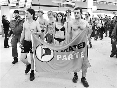德国群众在柏林机场半裸抗议政府引进更为严格的人体扫描设备。
