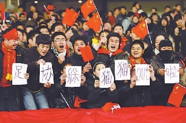 2010年1月6日,在杭州举行的2011亚洲杯预选赛小组赛中国对叙利亚的比赛中,球迷打出标语讽刺足协。李建刚摄