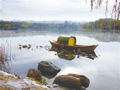 忽闻一夜霜雪来,千树万树添异彩。清晨的阳光下,原本葱绿的树叶变了色彩,金黄、火红、葱绿斑斓交织。微风吹过,树叶飘落到小河上,顺水漂流,蓝天倒映河水中,如诗如画。承德避暑山庄是我国现存最大的古典皇家园林,融合中国南北园林风格为一体,堪称中国古典园林艺术的总结与升华。它的建造依据“物尽天然之趣,不烦人事之工”的原则,充分利用山庄内山峦、溪流、湖泊、平原等自然条件,因地制宜地修筑亭台楼阁,尽量保留大自然的山林野趣。魏洪如 摄