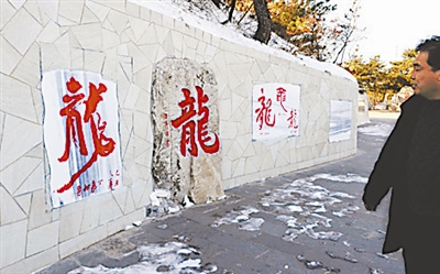 ④在云龙山的盘山路上随处可看到中国名人和书法家留下的炎黄子孙都是龙的传人的“龙”字。本报记者许之丰 摄