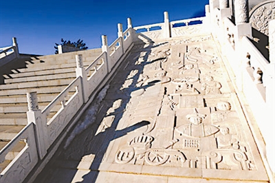②汉白玉的壁画上记载着中国历史名人故事。 本报记者许之丰 摄