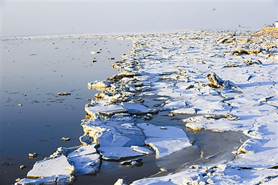 盘锦辽河入海口处形成的堆积冰(1月15日摄)。