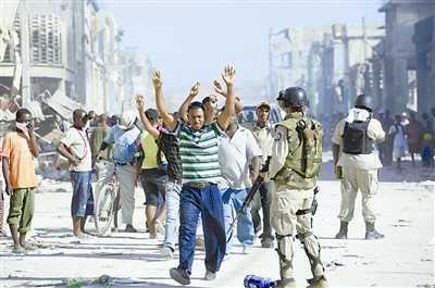 1月16日,在海地首都太子港,海地警察逮捕涉嫌抢劫的人员。海地强烈地震以后已发生数起抢劫事件,目前当局正在采取措施防止大规模暴力事件的发生。新华社/路透