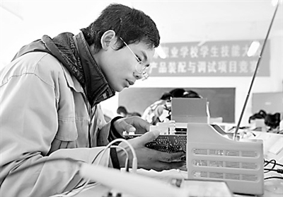 1月16日,选手正在进行电子产品装配与调试竞赛。当日,安徽滁州市举办第三届中等职业学校学生技能大赛,全市有16所中等职业学校(中专、技工)组队参加,271名选手共参加了工具钳工、普通车工、维修电工、动画制作等15个项目的竞赛。王家国 摄