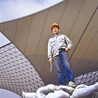 在踏进世博园的那一刻起,记者就被眼前的景象所深深震撼。阳光下,一年前的钢筋铁骨已化身为美轮美奂的艺术品。是谁有如此魔力,将世界的精华浓缩在5.28 平方公里的浦江两岸?又是谁有如此神力,将百炼之钢搭成这展示城市梦想的舞台?是我们的世博雕塑师,是我们的世博建设者!在这梦想之都,记者总会看到那些默默工作的一线建设者,他们很普通,每日忙碌地穿行于水泥丛林间。你很容易便可找到他们:斑驳的衣着、朴实的面庞。只有头顶的安全帽鲜艳而瞩目,散落在雄伟的建筑间宛如点点星光。然而就是荧荧之光汇聚在一起时却堪比皓月,照亮世博工程建设一路高歌猛进。在高不可攀的脚手架上,有他们的身影在飞舞;在油漆弥漫的色彩里,也有他们的青春在挥洒。