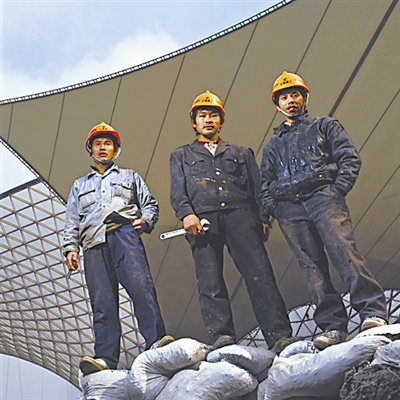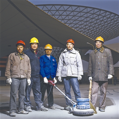 面对镜头与闪光灯,可爱的建设者们显得是那样羞涩,“衣裳脏,照出来不好看”常常成了他们婉拒拍照的挡箭牌,面对记者的极力劝说,往往最能打动他们的是“拍张干活地方的照片给家里人看”这样一个简单的理由,在记者的镜头里,父子档、夫妻档、叔侄档屡见不鲜。有年方弱冠的毛头小伙,也有年近花甲的老师傅。来自五湖四海的建设者汇聚在这里,没有什么豪言壮语,“把活干好”这句话却常挂在嘴边。没有娇柔造作的摆姿,在自己熟悉的工作环境里,在自己亲手建起的场馆前,我们的建设者们个个充满自信与骄傲,每一次拍摄都会引起工地小小的骚动,围观工友们善意的调侃让大家在紧张忙碌中获得片刻轻松。他们真的太累,太辛苦了。记者竭力想要拍得人多一些,再多一些。因为记者深知,在工程机械的喧嚣停止时,在人们载歌载舞欢庆世博时,这群可爱又可敬的建设者将汇入中国亿万劳动大军中奔流而去。当游客惊叹建筑奇迹时也许不会想到他们,但建设者的功绩必将会载入史册 !