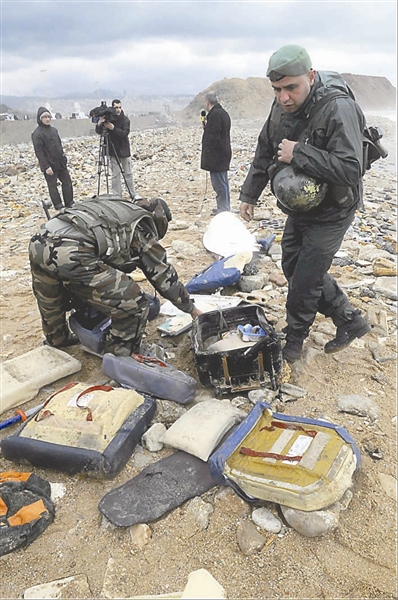 1月25日,搜救人员在黎巴嫩首都贝鲁特以南的海岸边发现飞机残骸。