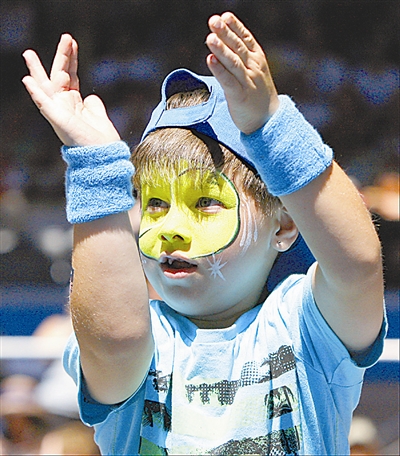 1月25日,一位小球迷在观看塞尔维亚选手焦科维奇与波兰选手库波特的比赛。当日,在2010年澳大利亚网球公开赛男单八分之一决赛中,焦科维奇以3比0战胜库波特,晋级八强。