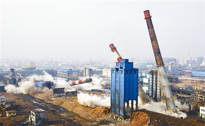 当日,上海焦化有限公司3座百米高的焦炉烟囱和两座45米高的焦炉煤塔被爆破拆除。烟囱和煤塔所属的4座焦炉始建于20世纪50年代,是上海的“功勋焦炉”,曾经担负着为上海50%的家庭供应人工煤气的任务。焦炉拆除后将在原址上新建一条煤精细化工产品生产线,每年将减少二氧化硫排放近2000吨,减少烟尘排放近1500吨。新华社记者 裴鑫 摄